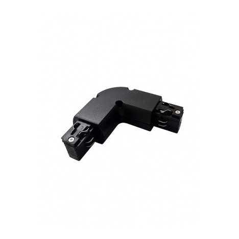 Šinski konektor za ugaono (L) nastavljanje trofaznih (trostepenih mono) sina.Konektor ima i perforaciju za ulazak kabla tako da ujedno moze sluziti i kao napojni element za šine.